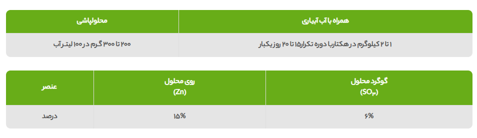 کود روی 15 درصد اگری پلکس دارای عناصر روی و گوگرد مورد نیاز گیاه می باشد که با تامین این عناصر برای گیاه از خسارات ناشی از کمبود آنها پیشگیری می کند . این کود همچنین به صورت محلولپاشی و آب آبیاری قابل استفاده می باشد .